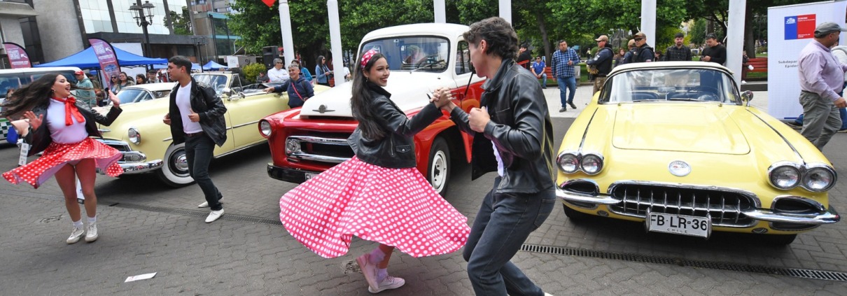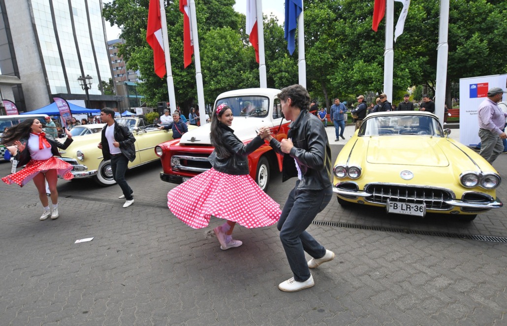 La Plaza Aníbal Pinto de Temuco vivió una escena digna de película cuando vehículos clásicos de los años 50, facilitados por el Club de Autos Antiguos y Clásicos de La Araucanía y de la Casa Inglesa de Antigüedades, se instalaron en pleno corazón de la ciudad, acompañados por una intervención artística del Ballet Folclórico de Temuco (BAFOTE), cuyos bailarines interpretaron una coreografía inspirada en la estética y el estilo de GREASE. La atmósfera retro, los colores, la música y la puesta en escena llamaron la atención de los transeúntes, quienes se detuvieron para grabar, aplaudir y fotografiar la intervención. Con esta acción urbana se dio inicio al lanzamiento oficial de GREASE (Brillantina), que tendrá su estreno nacional en el Teatro Municipal de Temuco el sábado 22 de noviembre a las 20:00 horas.