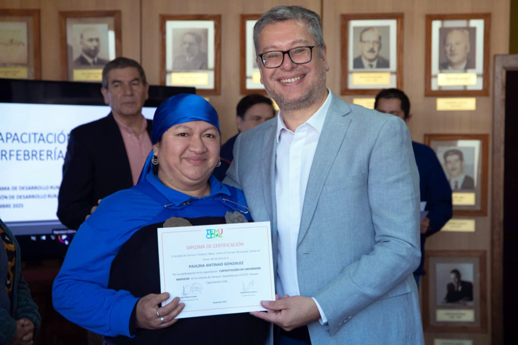 Con emoción y orgullo, 30 vecinos y vecinas de distintos sectores rurales de Temuco recibieron su diploma de participación en la primera capacitación en Orfebrería Mapuche del programa Proder, impulsada por la Dirección de Desarrollo Rural de la Municipalidad.